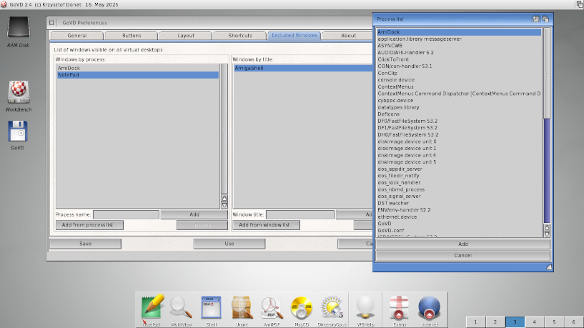 with virtual desktop buttons on the Workbench screen.